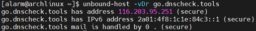Für das Testen orientieren wir uns wieder am Wiki: https://wiki.archlinux.org/title/Unbound#DNSSEC_validation