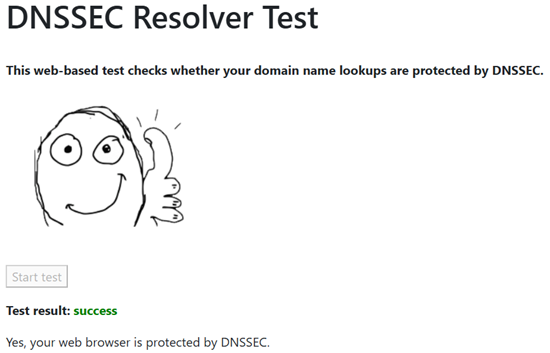 Zum Testen surfen wir gleich die DNSSEC Webseite an und starten den Test: